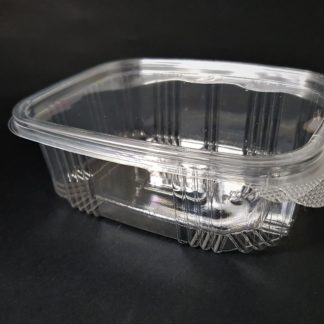 TARRINA OVAL BISAGRA TAPA ALTA PET 370ml