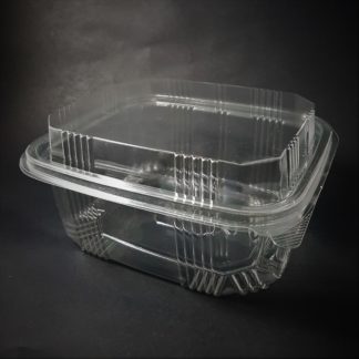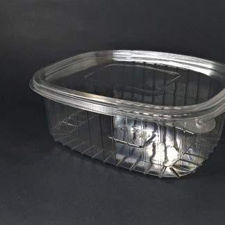 TARRINA OVAL BISAGRA TAPA ALTA PET 500ml