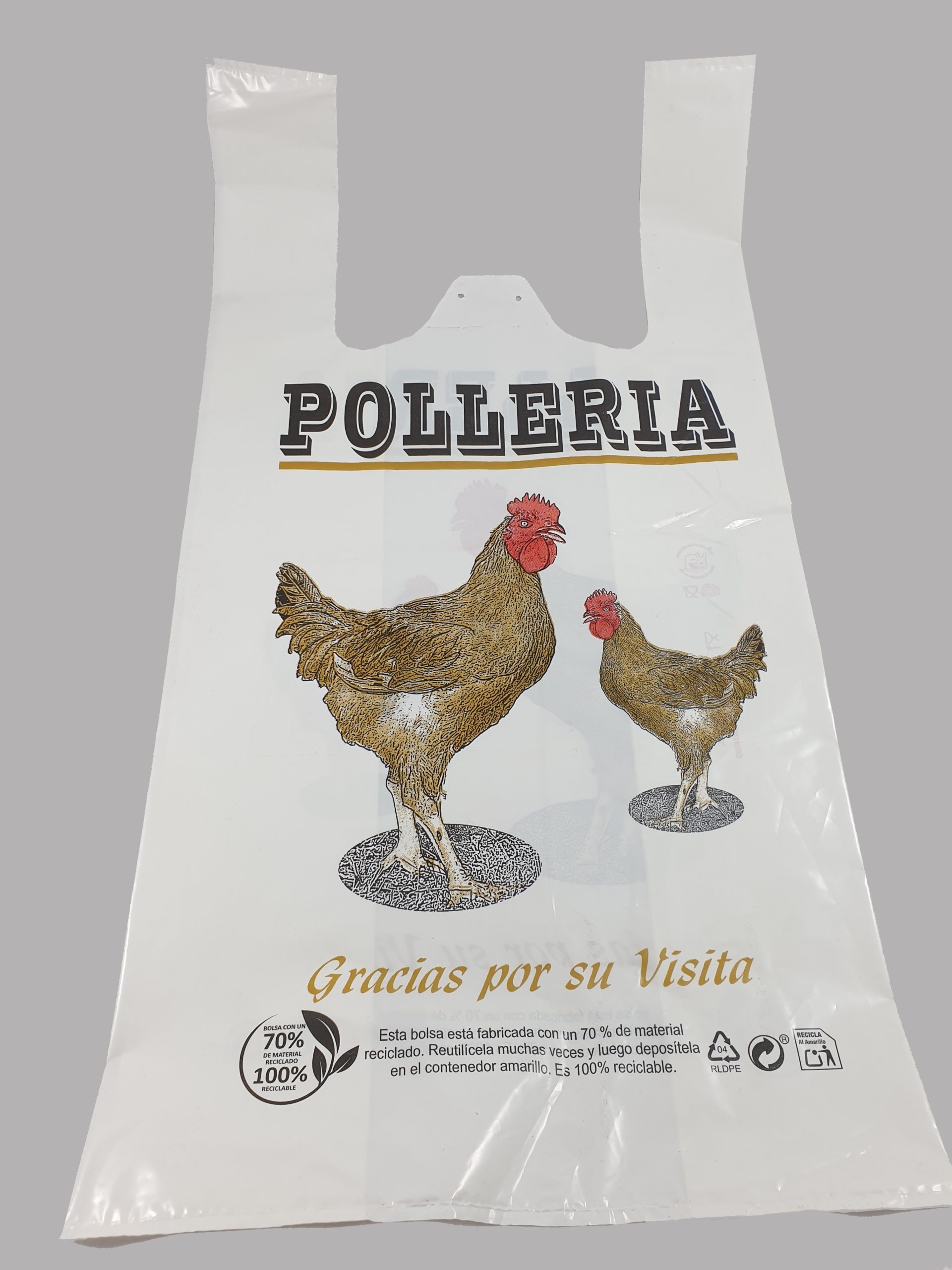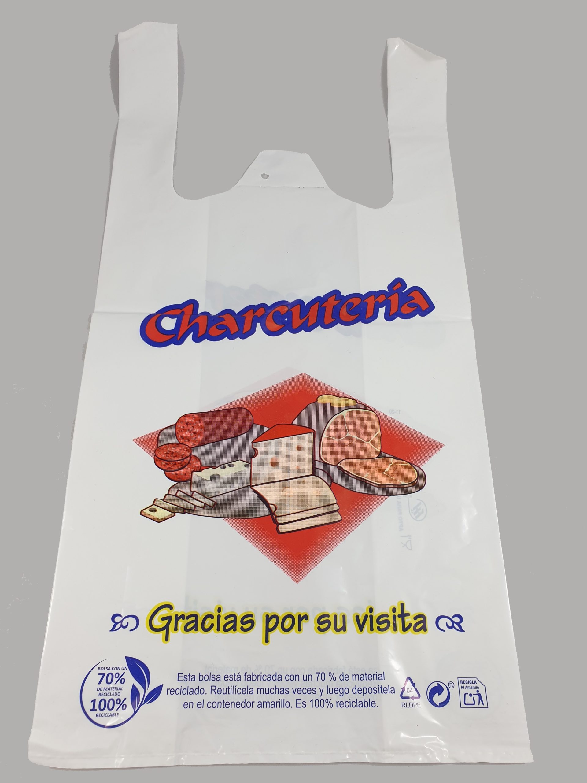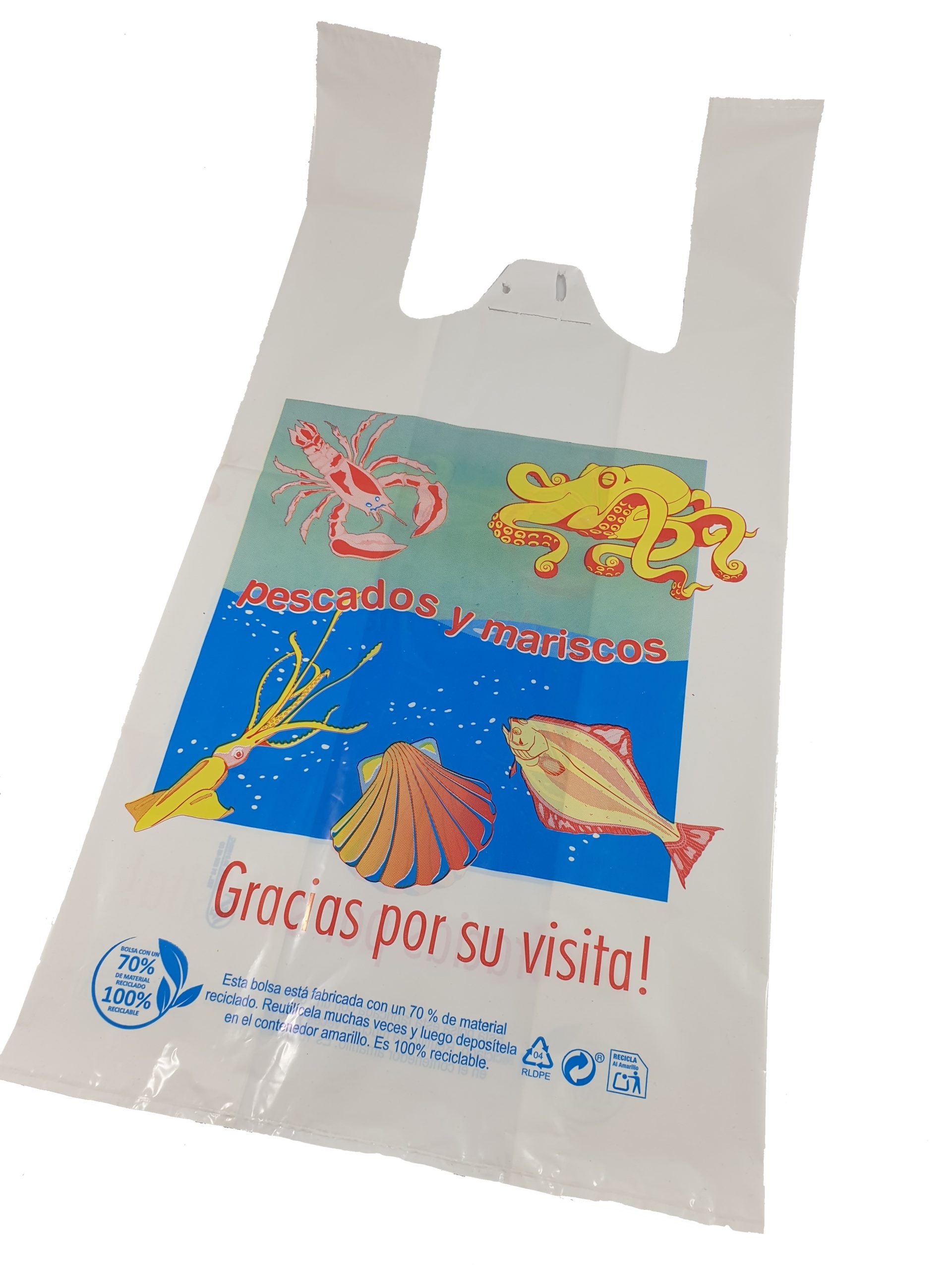 BOLSA CAMISETA FABRICADA CON UN 70% DE MATERIAL RECICLADO.