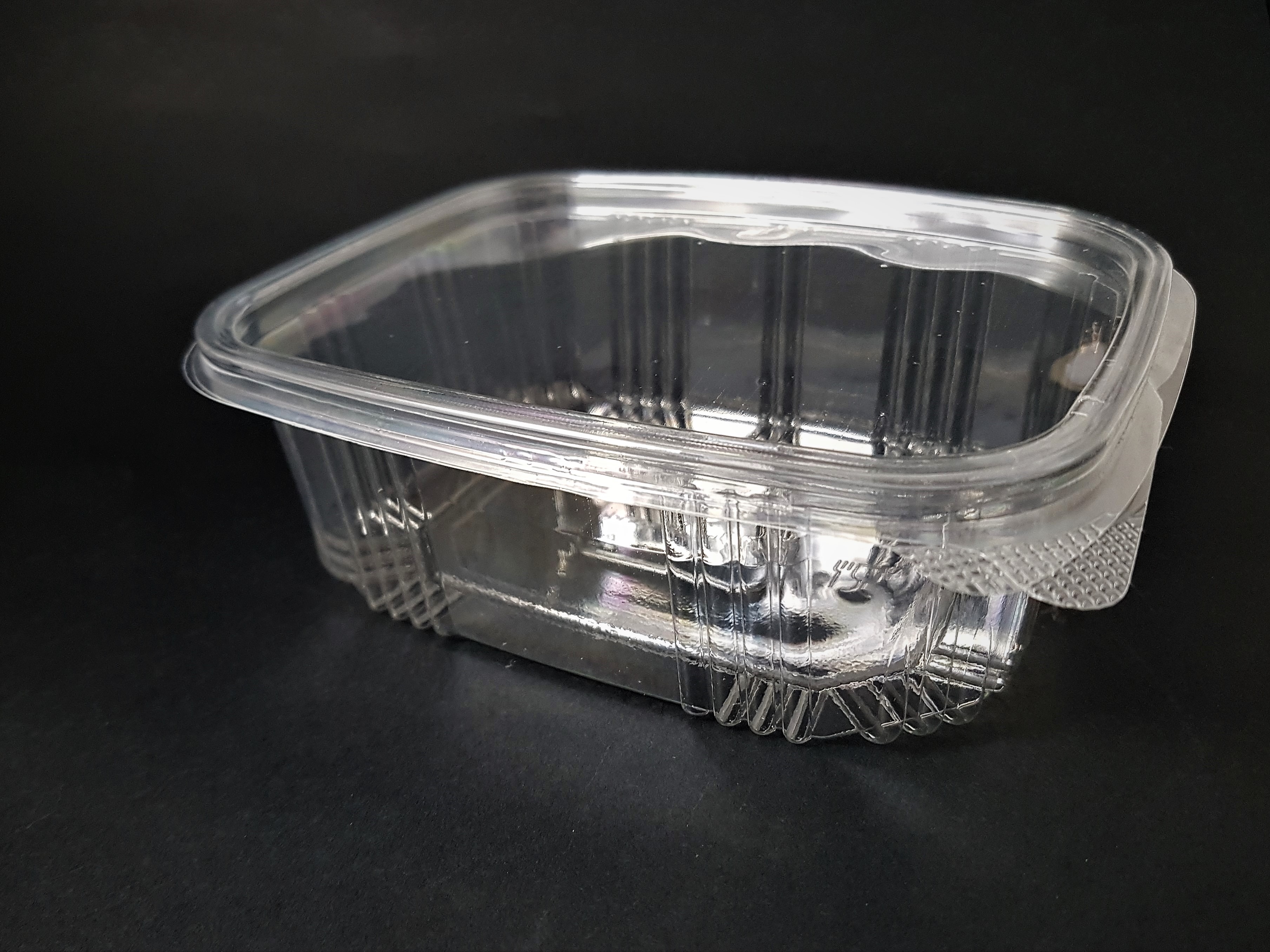 TARRINA OVALADA DE PET CON TAPA TRANSPARENTE PARA USO ALIMENTARIO CON 250 ml DE CAPACIDAD. IMPERMEABLE